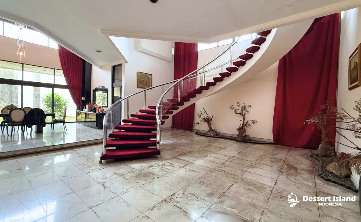 Untuk kebutuhan ruang, rumah ini menyediakan 5 kamar tidur dan 5 kamar mandi, serta 2 ruang keluarga yang nyaman. Area servis juga sangat lengkap dengan 1 dapur bersih, 1 dapur kotor, serta 3 kamar pembantu, sehingga menunjang aktivitas rumah tangga secara maksimal.